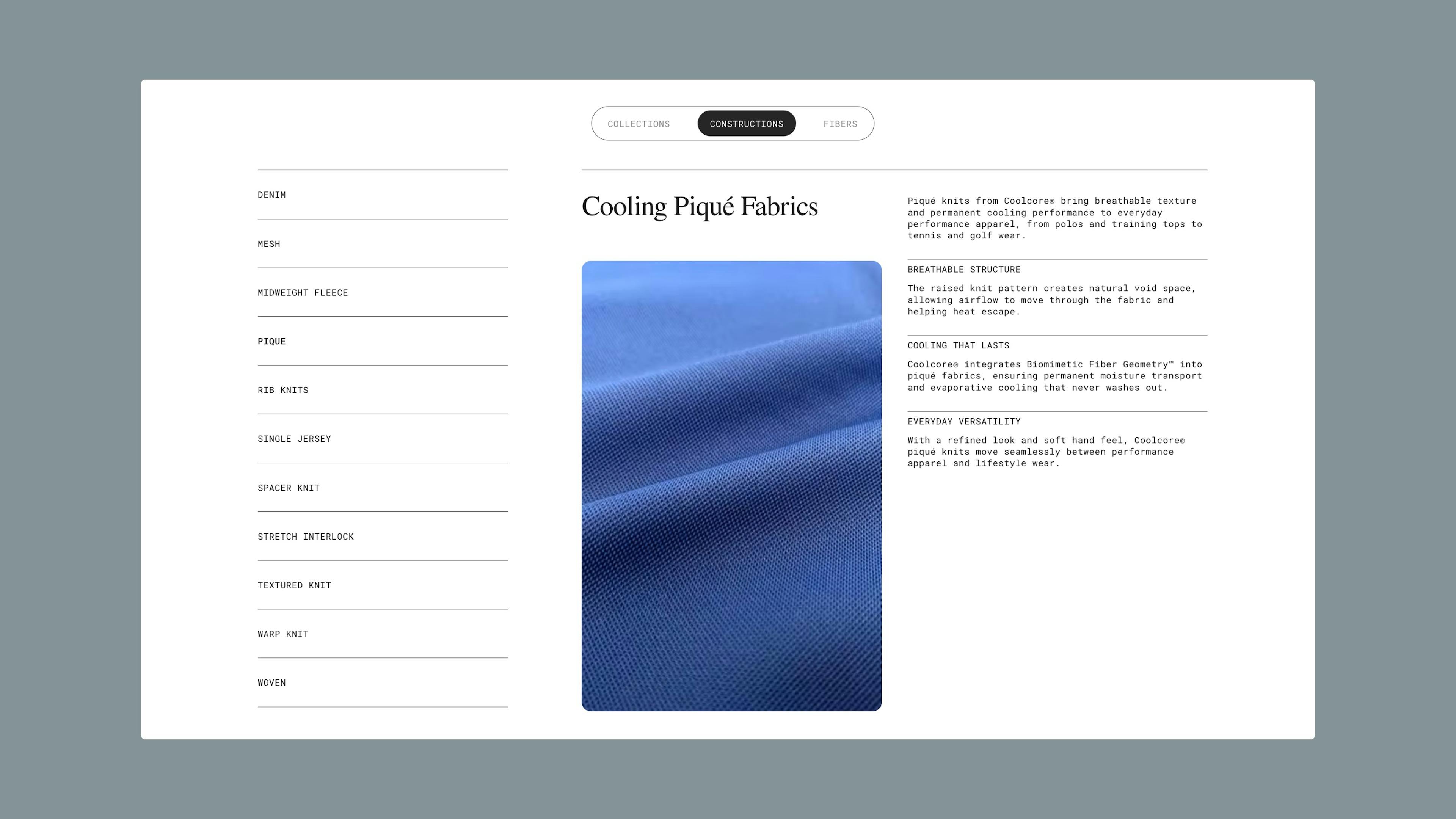Using Next.js with a Prismic CMS was a no-brainer for this project. We created a customized library of designed modules to allow the Coolcore team to showcase their fabrics, constructions, and collections, alongside flexible, repeatable templates for all content types and resources, including case studies, tradeshows, articles and more.